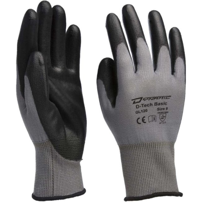 ESE D-Tech Basic Work Gloves hard-wearing, comfortable, seamless knitted nylon glove with PU palm coating for good grip on dry & wet surfaces.