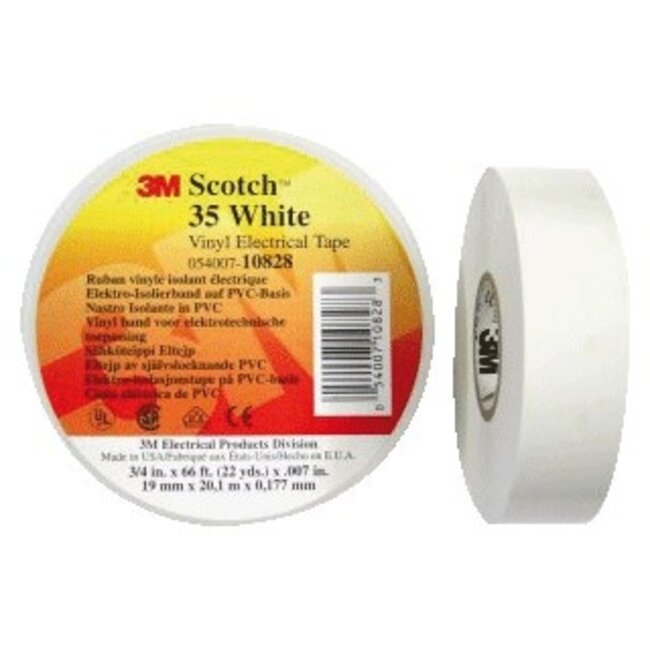Scotch® Vinyl colour-coded insulation tape Premium 35 offers electrical and mechanical protection with the combination of an aggressive, pressure-sensitive rubber resin adhesive and an elastic PVC backing. This tape is flame-retardant and highly resistant to UV radiation, abrasion, moisture, alkalis, acids, solvents and varying weather conditions. Stretches easily and adheres in almost any shape. Ideal for insulating electrical wires and is compatible with synthetic cable insulations, jackets and splices.