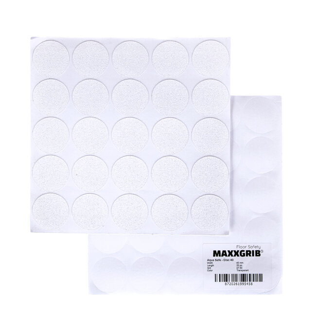 MaxxGrib Aqua Safe Antislip Discs, met deze transparante antislip rondjes verhoog je de veiligheid in bad en in de douche. De rondjes hebben een sterke kleefkracht met rubberachtige oppervlakte en helpen uitglijden te voorkomen. Duurzaam en makkelijk te installeren, vocht- en waterbestendig.